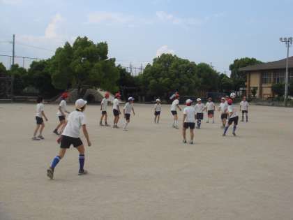 部活が始動して1ヶ月弱。6年生のキャプテン中心に練習に励んでいます。サッカーはチームワークが命。キャプテンの声にも素早く反応して動いています。今年初めて参加する5年生も,6年生の姿を見て,その姿に追いつこうと頑張っています。良いチームになりそうです。