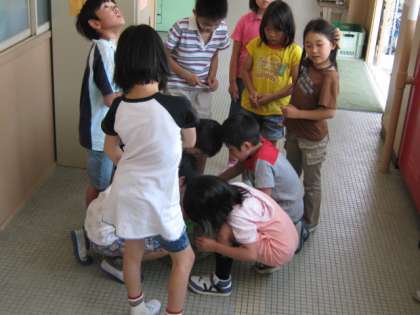 「そっと入れなあかんねんで!!」とみんなで相談しながら虫かごに入れていました。