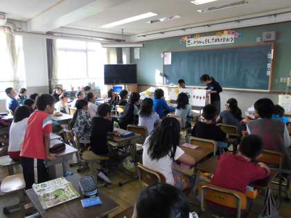 最後に,透明の生き物や骨についてのお話など,面白い本もお貸しく下さり、子どもたちは休み時間,興味津々で読む姿が見られました。また,お話にできてた歌もいろいろなところで口ずさんでいました。素敵な時間をありがとうございました。