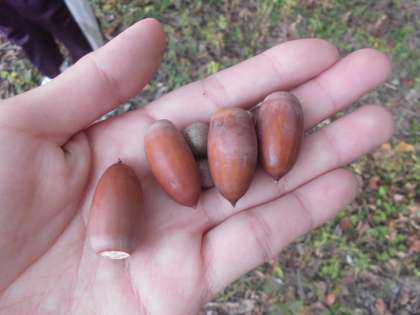 ドングリや松ぼっくり,秋の虫やカエルなど,いろいろな物を見つけました。