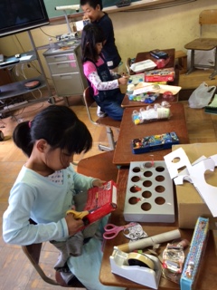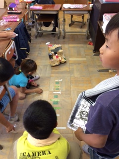 生活科では,おもちゃフェスティバルに向けて,最後の準備をしました。「高いところから転がした方がボールが速く進むな。」「ゴムの力で,的を倒そう!」など,理科に繋がるつぶやきがたくさん聞こえてきました☆本番が楽しみです!
