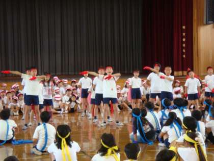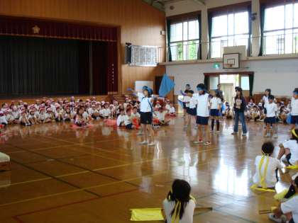 今日の全校練習,雨で体育館での練習となりました。応援合戦の練習時間が多くなり,なおかつ体育館なので音・声が響きます。そんな中で団長3人はいつも以上の声を出しがんばりました。運動会当日,のどが痛くならないことを願っています。