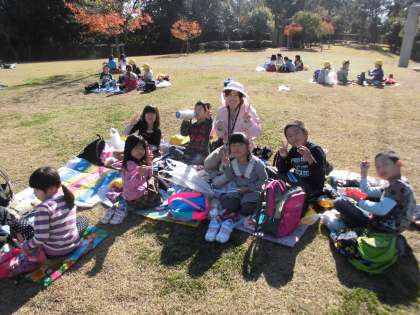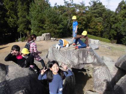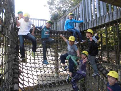 最初は1年生と一緒に秋見つけをして,最後にアスレチックで思いっきり遊びました♪