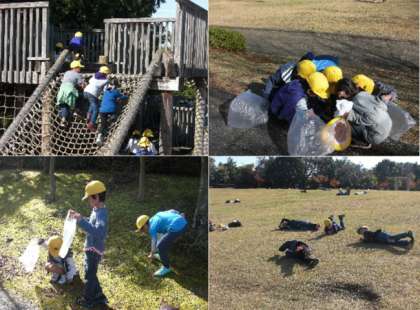 秋見つけでは,栗や松ぼっくり,どんぐり,落ち葉集めを楽しみました。