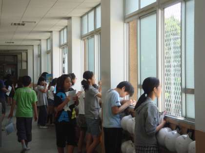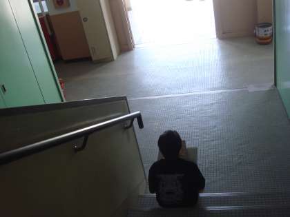 ふと見ると,自分の世界に入り込んでいるのか,階段に腰掛け外をジッと見つめる子も…。以下に子どもたちの作品を紹介します。