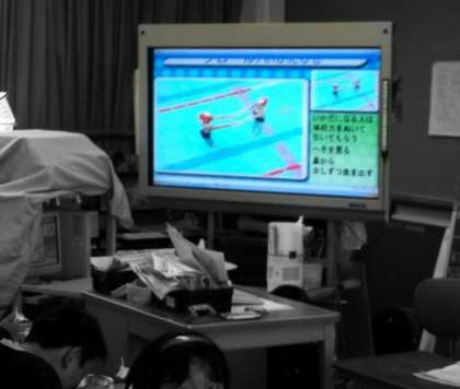 校内LANによって,水泳学習のDVDがどの教室のPCからでも視聴できます。