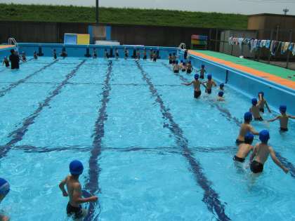 今日は今年度初めての水泳(みずあそび)の学習がありました。