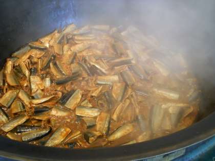 “さんまのかわり煮”は,赤みそ・三温糖・料理酒・トウバンジャン・こいくちしょうゆ・米酢で調味液を作り煮つけました。酢が入っているので骨までやわらかく,全部食べられました。