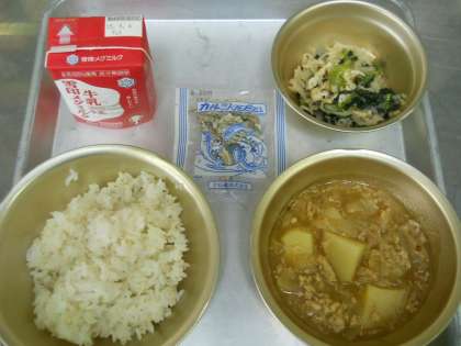 3月10日の献立は,「麦ごはん・牛乳・じゃがいものそぼろ煮・切干大根の煮つけ・じゃこ」でした。