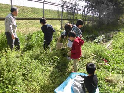 草ぬきをし,固くなった土を掘り起こすと,太ったミミズや幼虫がたくさん出てきてみんなおおはしゃぎでした。