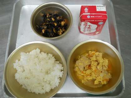 4月20日の献立は,「ごはん・牛乳・親子煮・ひしぎ豆」でした。