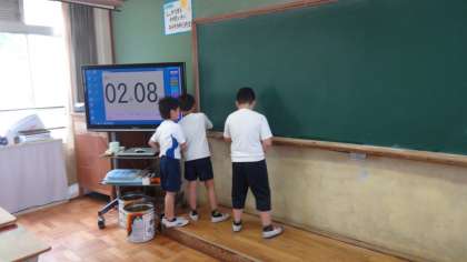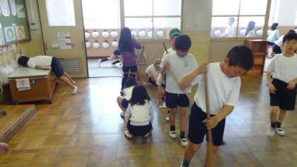 3年生からは掃除場所も増えましたが,渡り廊下の砂を綺麗にとったり,蟻の行列のように並んで教室掃除をしたり,黒板が深緑色になるまで何度も黒板を拭いたりと全員が一生懸命な姿を見せてくれました。