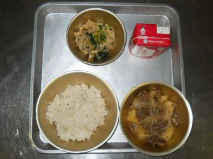 4月21日の献立は,「麦ごはん・牛乳・肉じゃが・小松菜と切干大根の煮びてし」でした。