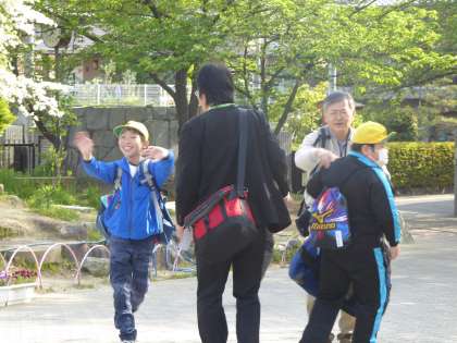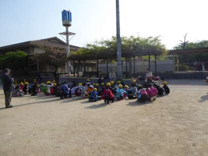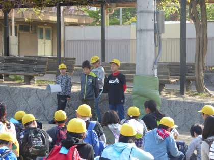 全員がそろい,出発式を行いました。素晴らしいお天気です。