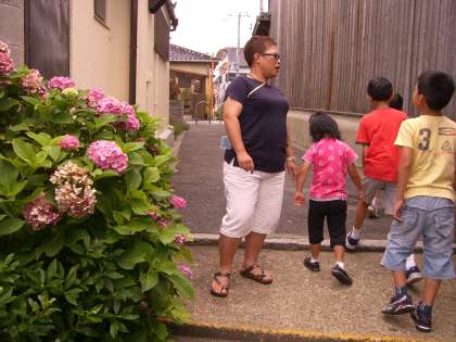 道に整列して移動中,アジサイやつばめの巣を発見!目的のものもしっかりゲット☆