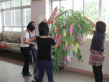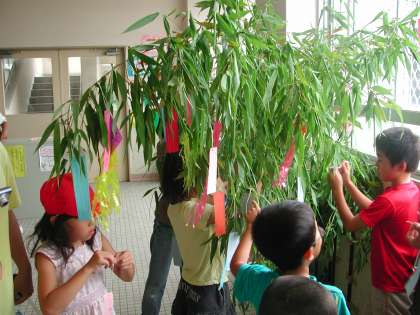 大勢の子ども達が,それぞれの願いを短冊に書きとめ,七夕飾りにつけました。