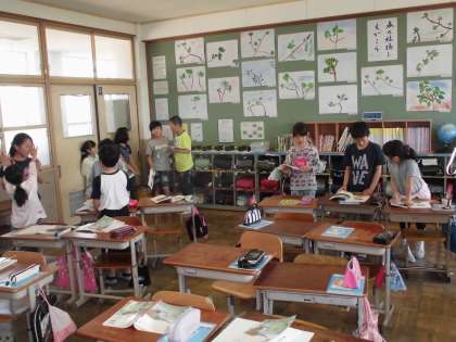 国語の授業では,春にまつわる俳句をよみました。グループ音読をしている様子です。みんな積極的に音読していました。