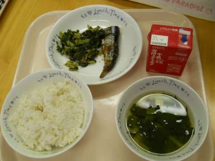 5月16日の献立は,「麦ごはん・牛乳・さんまのかわり煮・だいこん葉のいためもの・すまし汁」でした。