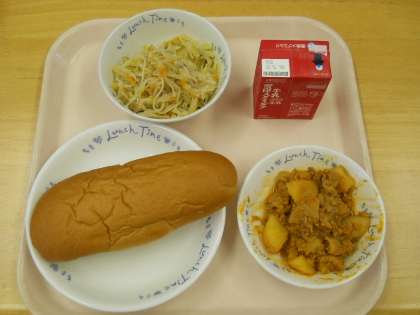 5月17日の献立は,「黒糖コッペパン・牛乳・豚肉のケチャップ煮・たっぷり野菜のビーフン」でした。
