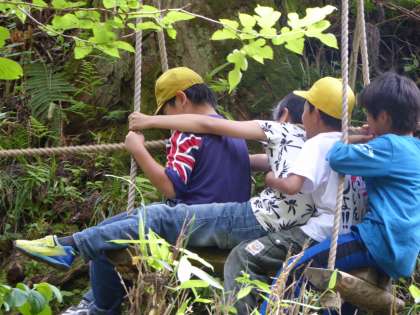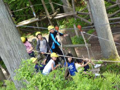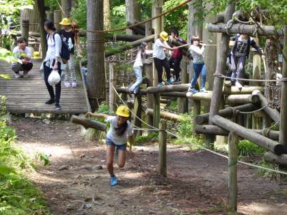 片づけの後には「冒険の森」のアスレチックで思いっきり遊びました。