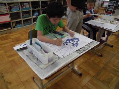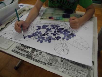 図工の時間に,3〜6年生が「季節の花・あじさい」に取り組みました。