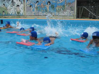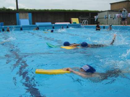 水温は低く少し寒かったですが,けのびやバタ足を中心に頑張りました。