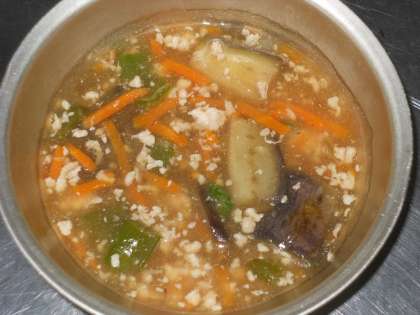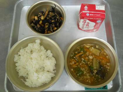 6月17日の献立は,「ごはん・牛乳・夏野菜のあんかけごはん(具)・ひじき豆」でした。