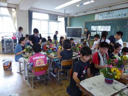6年生が花育活動の体験学習を行いました。