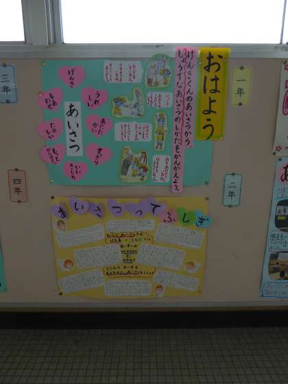 今回は「あいさつ」です。良いあいさつの仕方について考えたり,あいさつの意味について考えたりと学年の発達段階に応じた学習をしています。