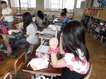 今日はカラーテスターという薬を使って,歯に残っている汚れのチェックをしました。
