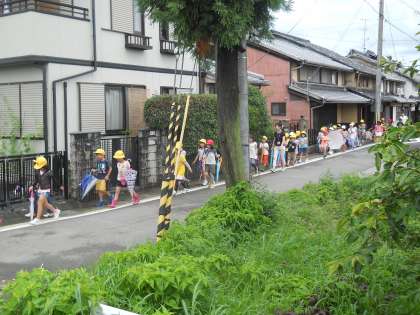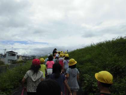 今日は,2回目の町たんけんに行きました。朝はまだ雨がパラパラと降っていて,少し心配でしたが,出発するころにはカラッと晴れて気持ちのいい天気になりました!今日は何が見つかるかな…とわくわく・ドキドキ,さあ出発です!!!