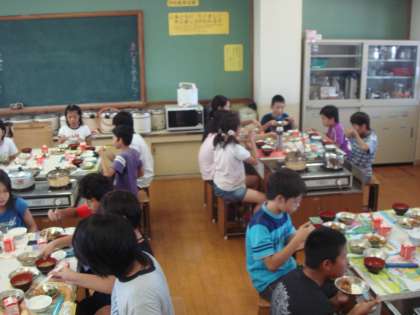今日,2組は調理実習を行いました。メニューはご飯と味噌汁。先週のうちにグループごとで計画を立て,打ち合わせを済ましているので,あらかじめ担任からの指示はほとんどないということを宣告しておきました。とは言うものの,やはり作業が軌道にのるまではヒヤヒヤ…。それでも子どもたちは自分たちで作業手順を考えながら一生懸命準備をしていました。慣れてくると早いもので,だんだんテキパキと動く姿が見られるようになってきました。無事,全グループ時間内に作り終えることができました!作ってから水の量を量ることを忘れていたことに気づいたグループもありましたが,終わりよければ全てよし?!自分たちで作ったご飯はとってもおいしかったようです。これでお家でもどんどんお手伝いが出来ますね!