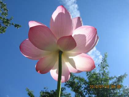 さて,まる池のハスは一番の見ごろです。ハスの花の寿命は4日と聞きますが,最後の日は,はらりはらりと花びらを落とし,もの悲しさを誘います。しかし,今は見とれるばかりの美しさです。