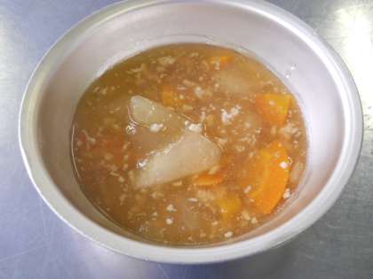 “とうがんのあんかけごはん(具)”は,鶏ひき肉ととうがんを使った,あっさりとしたあんをごはんにかけて食べるセルフ丼です。残暑がきびしく,食欲が落ちやすい時期ですが,しょうがの風味をきかせることで,ごはんがすすむように考えました。