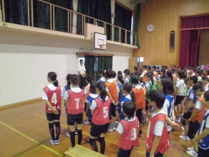 京都市内の小学校の部活動バレーボール部が各会場に分かれて交流試合をしました。