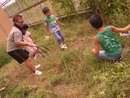 夏休みのあいだに雑草が伸び放題だったので,草引き大会を実施!