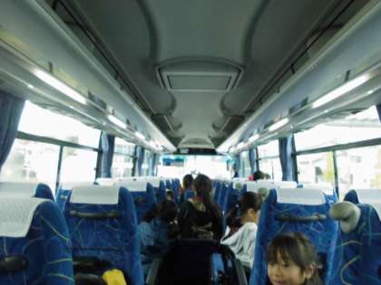 バスの中では,楽しくおしゃべりしたり,しりとりをしたり…