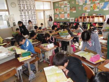 社会の授業が始まるときに,必ず「今日は,地図帳問題はしないのですか!?」という質問がでます。子どもたちは,いつも楽しみにしています。地図帳を広げ,示された地名を懸命に探します。制限時間は,1分間です。