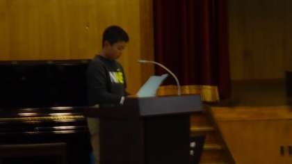 今日の児童集会で3年生の代表2名が感動体験作文の発表をしました。