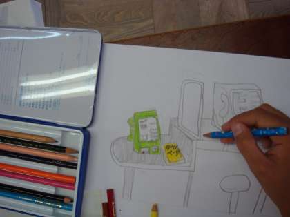 国語「みんなで生きる町」では,校内・校外にあるユニバーサルデザインについて調べています。総合的な学習ともコラボしていることなのでみんな一生懸命調べました。今日はそのことをまとめる1時間目。それぞれの資料をまとめながらユニバーサルデザインいついて絵や文章を書きました。
