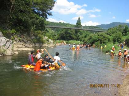 朝は,食堂でご飯を頂きました。そしてお待ちかねの川遊びです。ライフジャケットとヘルメットで身を固め,思い思いに遊びました。そのあとは,関西屈指の温泉「お亀の湯」で冷えた体を温めました。午後はのんびりとクラフトなどですごし,食堂でご飯を頂きました。