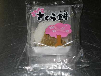 “桜もち”は,昨年度の3月に続き,2回目の登場でした。桜にちなんだ和菓子で道明寺粉を使った餅を塩漬けにした桜の葉で包んだもので,中にはこし餡が入っています。