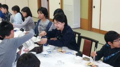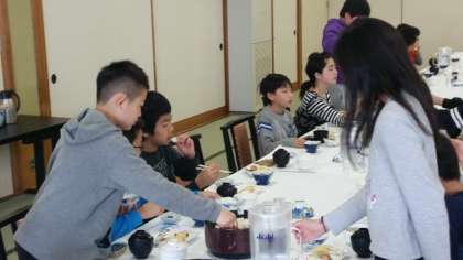 朝食を食べ始めるとにぎやかに会話がはずみ、笑顔がこぼれ始めました。