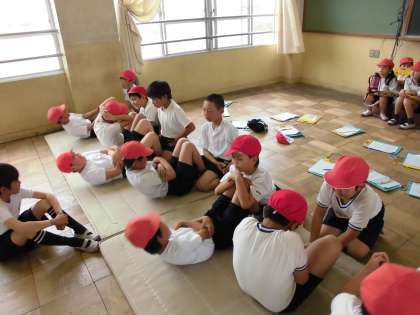 ソフトボール投げや,上体起こし,長座体前屈,反復横跳びなど色んな種目で記録が伸びるよう一生懸命に取組んでいました。