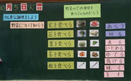 野菜についての知識を深め,野菜の調理の仕方を学習しています。