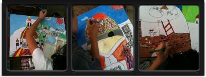 <変わり者ピッポ>を使って,お話の絵を書いています。