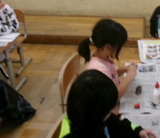 今日から秋見つけでみつけたものをつかっておもちゃ作りを始めました。今日は、ためしに紙コップのなかにどんぐりを入れて楽器をつくりました。「カラカラ」という音が出てたのしくつくりました。次からは自分のアイデアを生かしてつくってみます。