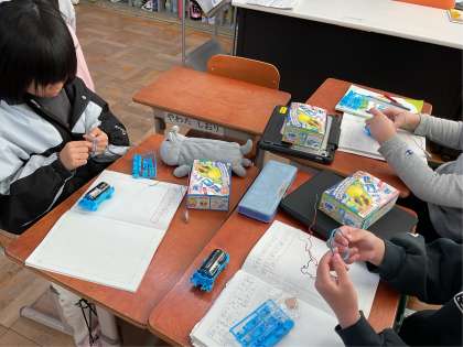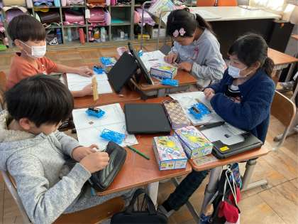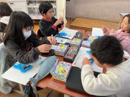 どうしたら電球が付くのかなと考えて実験していました。