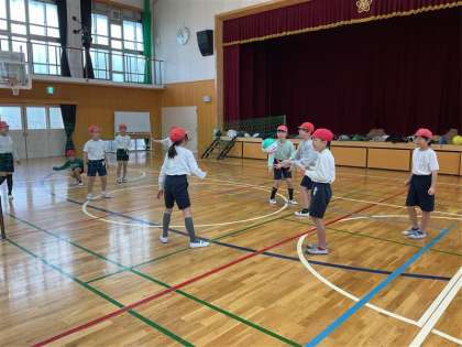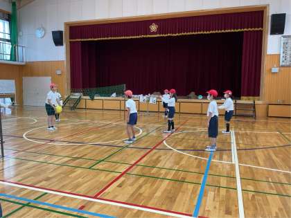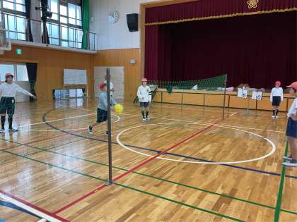 ソフトバレーボールの学習が終わりました。チームでボールをつなぐのが難しかったですが、友達と声をかけあって頑張っていました。