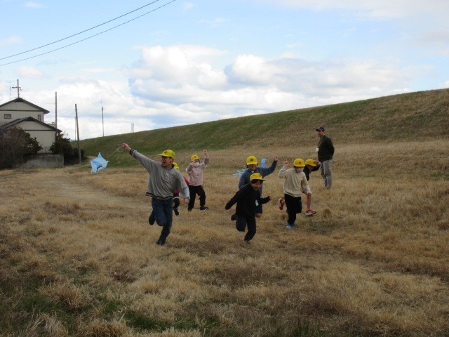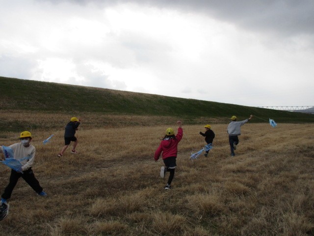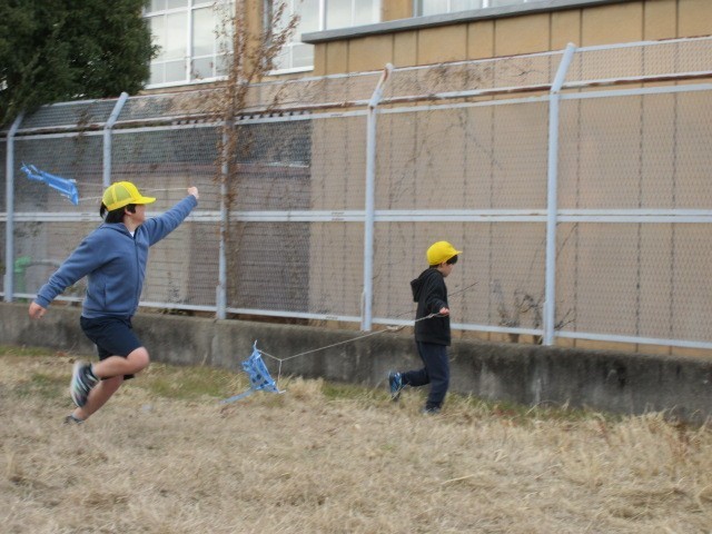 1年生も6年生も無我夢中で凧揚げを楽しんでいました。